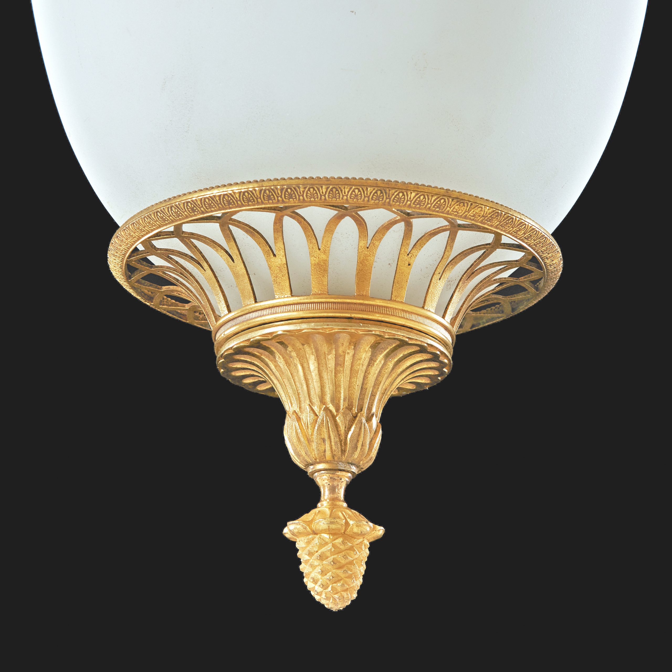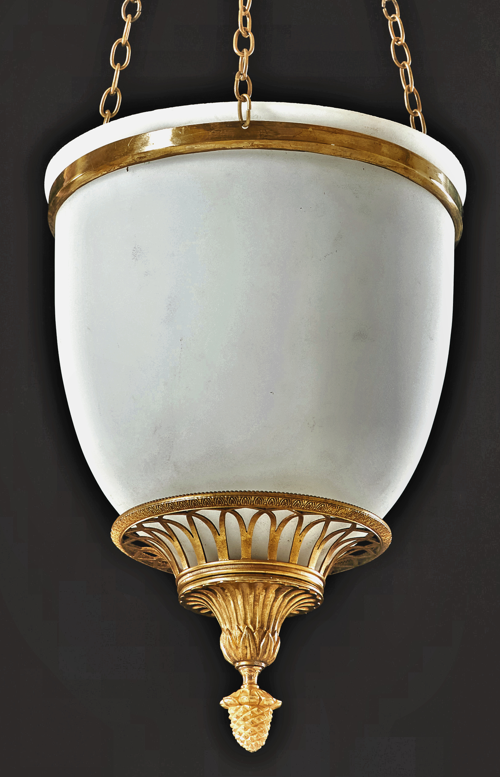 Ampel Deckenlampe Empire um 1800 Opalglas H. 63 cm