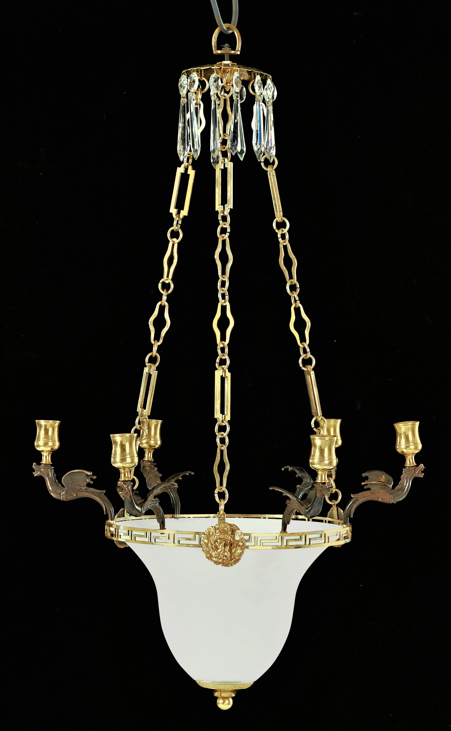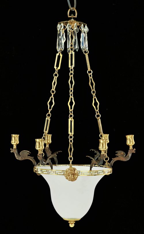 Ampel Lüster Kronleuchter Laterne Klassizismus Louis XVI um 1790 H. ca. 30 cm (ohne Kette) bzw. 70 cm, Br. 44 cm