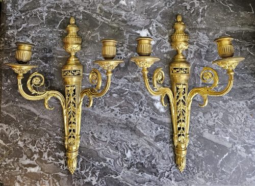 Appliken Wandlampen Klassizismus Frankreich Louis XVI Directoire um 1790 H. 36 cm, Br. 26 cm, T. 14 cm