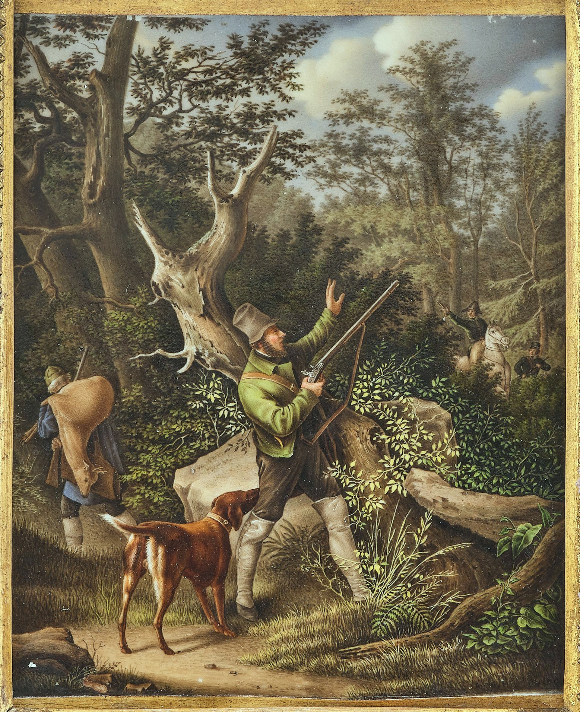 Carl Friedrich Heinzmann (1795 Stuttgart-1846 München) Porzellan-Bildplatte wohl Porzellanmanufaktur Nymphenburg – Signiert auf dem Stein in der Mitte