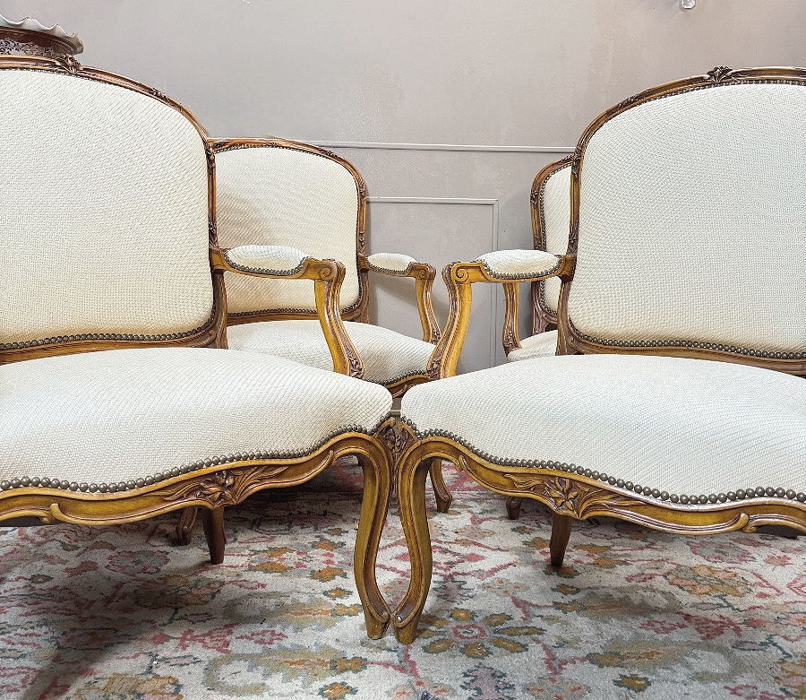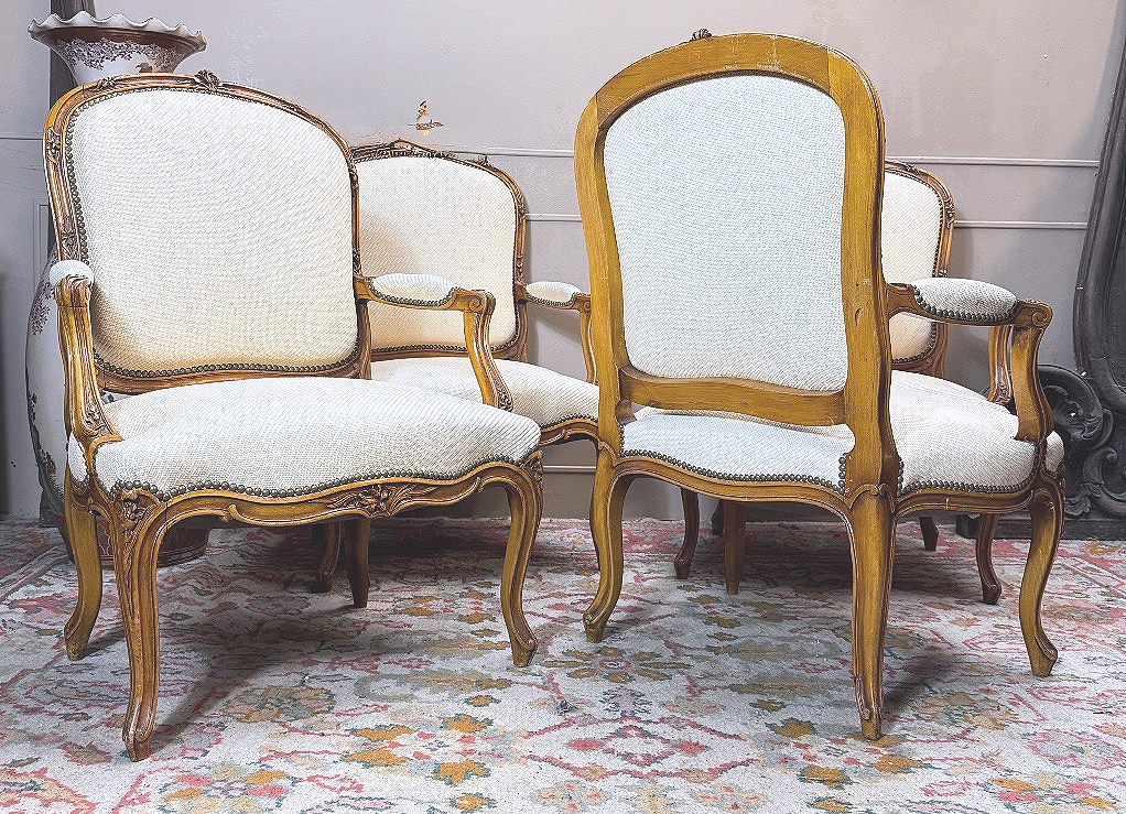 Fauteuils vier bzw. 2 x zwei Sessel Rokoko Frankreich Louis XV um 1750 H. 100 cm, Br. 72 cm, T. 50 cm Die Fauteuils können auch paarweise abgegeben werden.