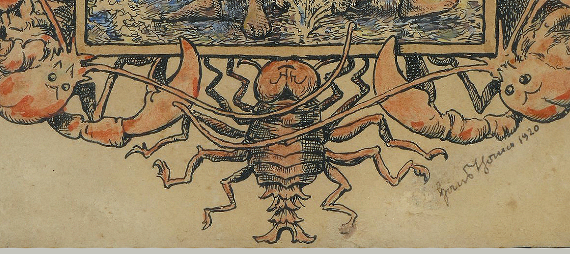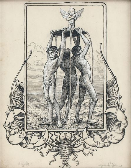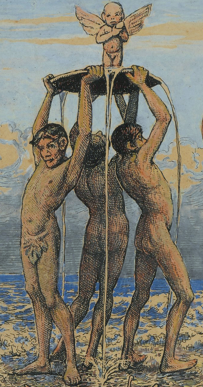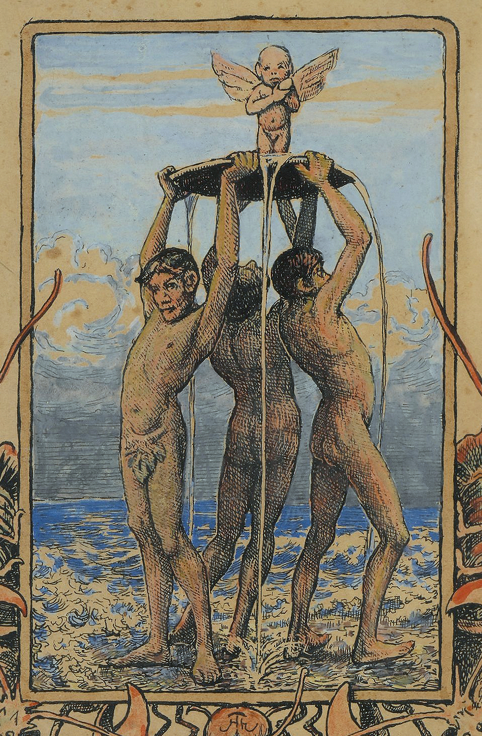 Hans THOMA (Bernau 1839 – Karlsruhe 1924) Meerwunder Vorlage zur gleichnamigen Lithographie Feder und braune Tinte, Aquarell. Signiert und datiert unten rechts: Hans Thoma 1920.
