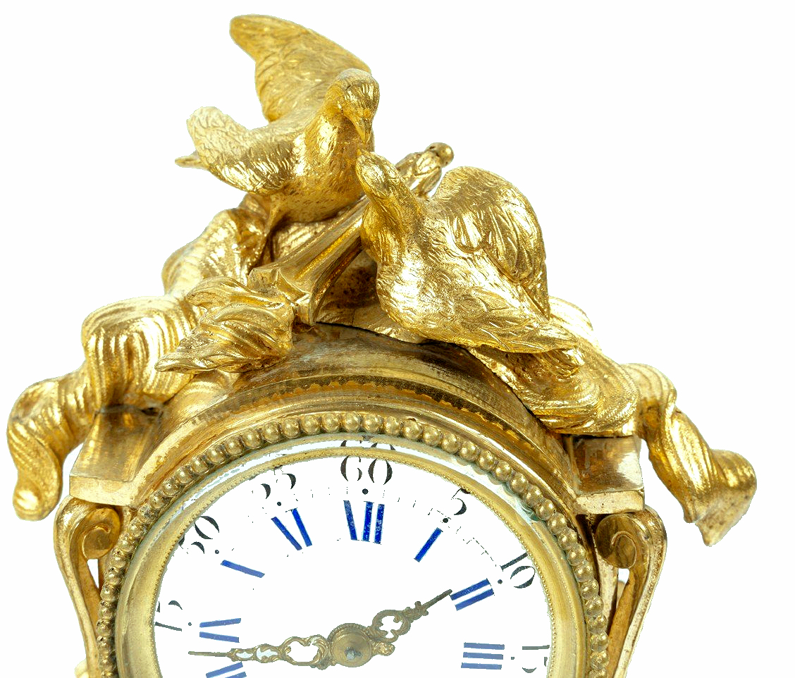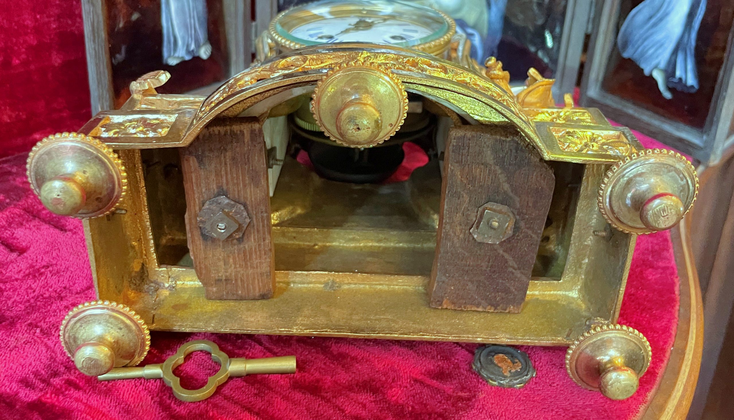 Die hier angebotene Kaminuhr besitzt das typische Uhrwerk aus der Zeit zwischen 1780 und 1810 (überprüft von meinem Uhrenrestaurator, der u.a. die Uhren im Schloß Charlottenburg in Berlin restauriert hat).