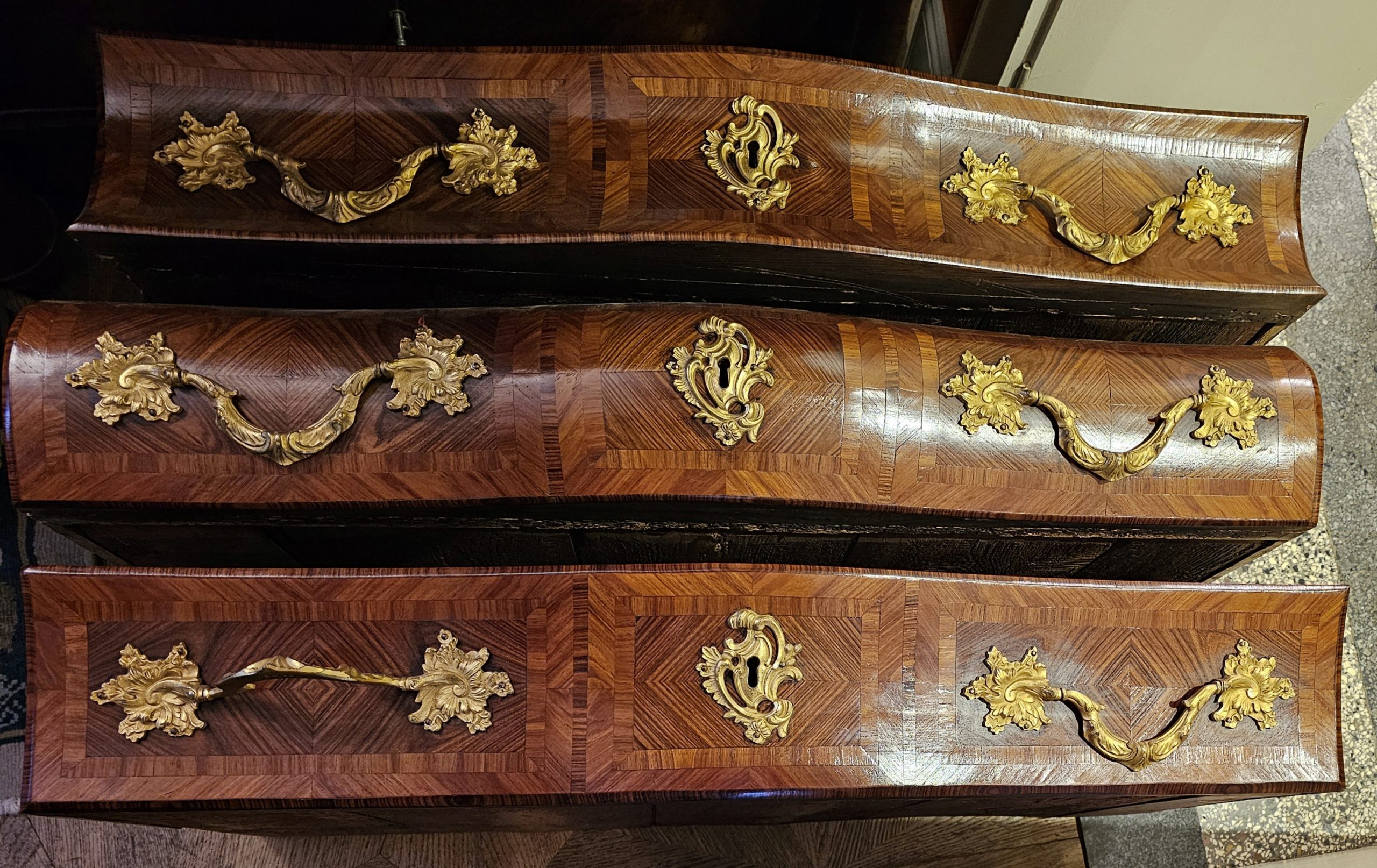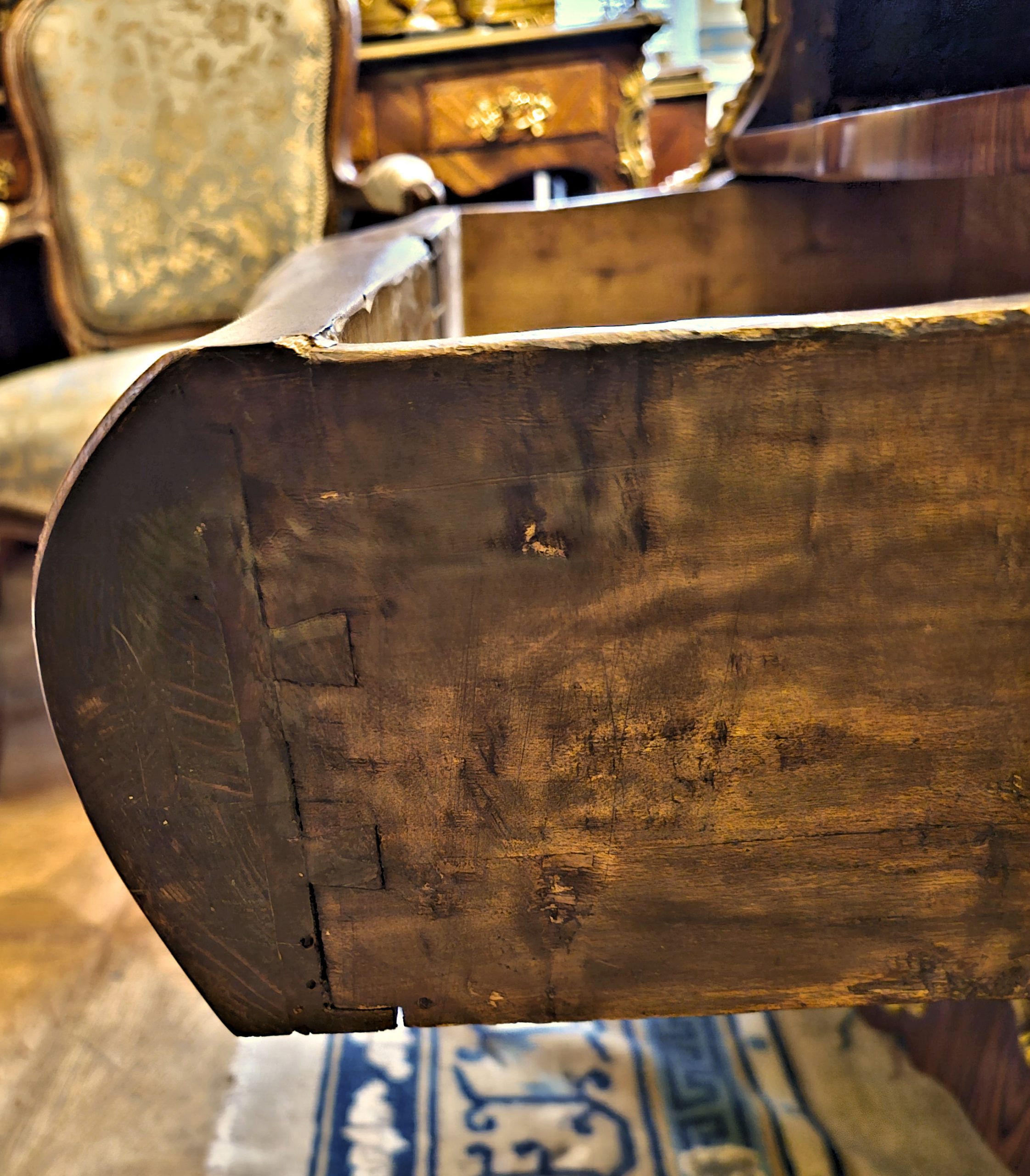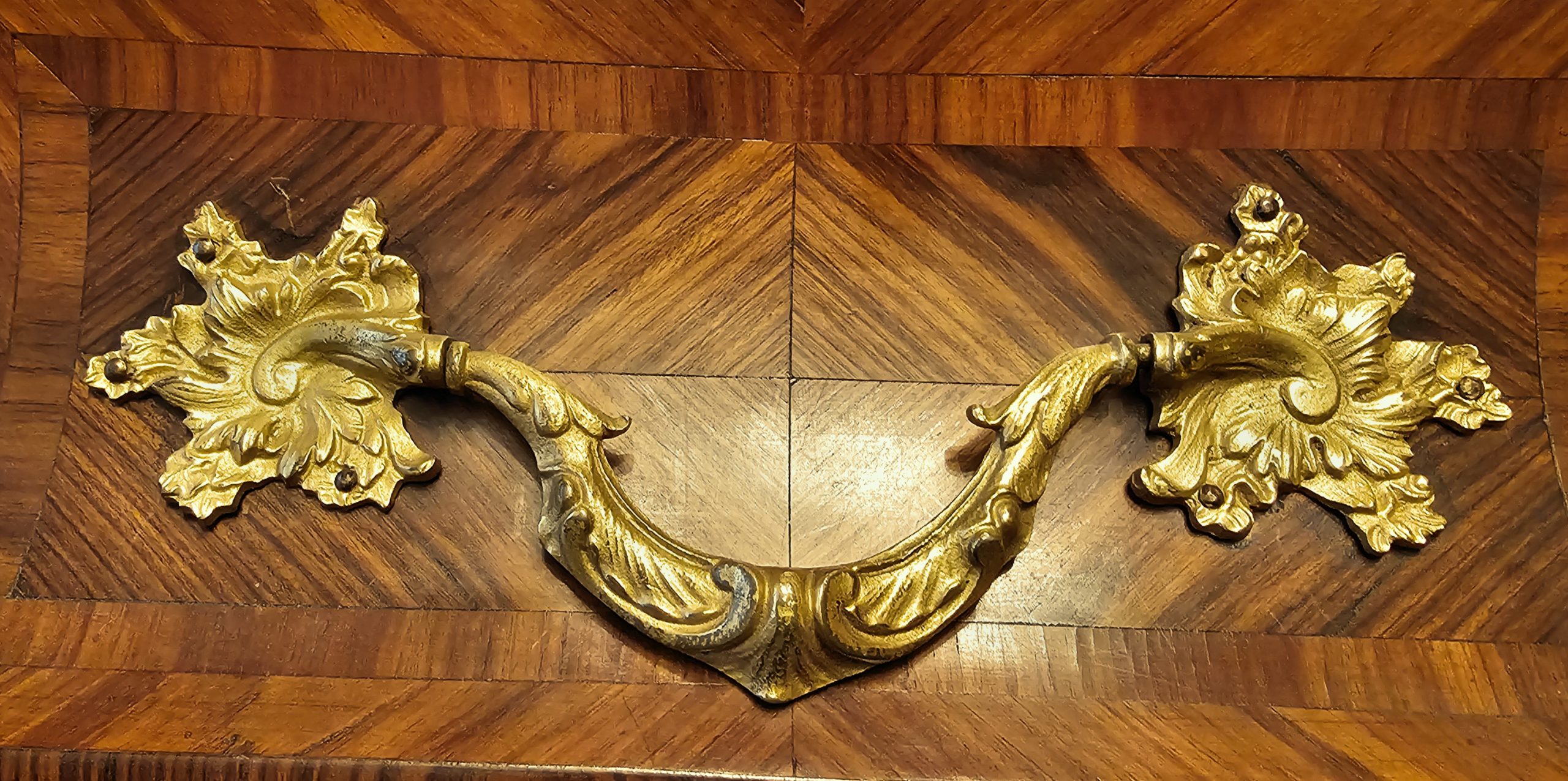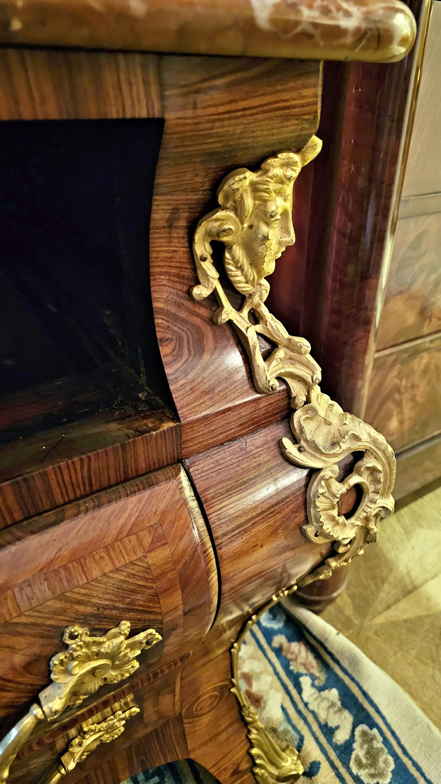 Reiche vergoldete Bronzeverzierungen u.a. mit seitlichen Maskarons und Akanthus