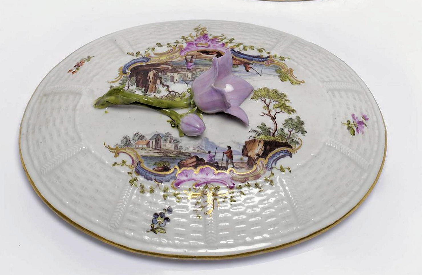 Ludwigsburg Porzellan Deckeldose oval um 1765 Malerei Flusslandschaften Gottlieb Friedrich Riedel (1724-1784)