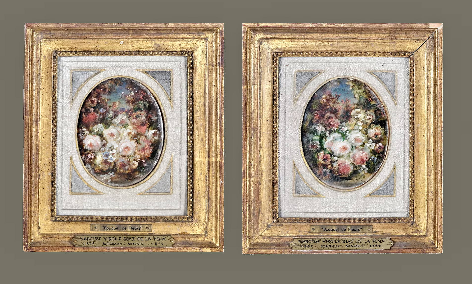 Narcisse Virgilio Díaz de la Peña 1807 – 1876 Paar Blumenstillleben Pendants – signiert