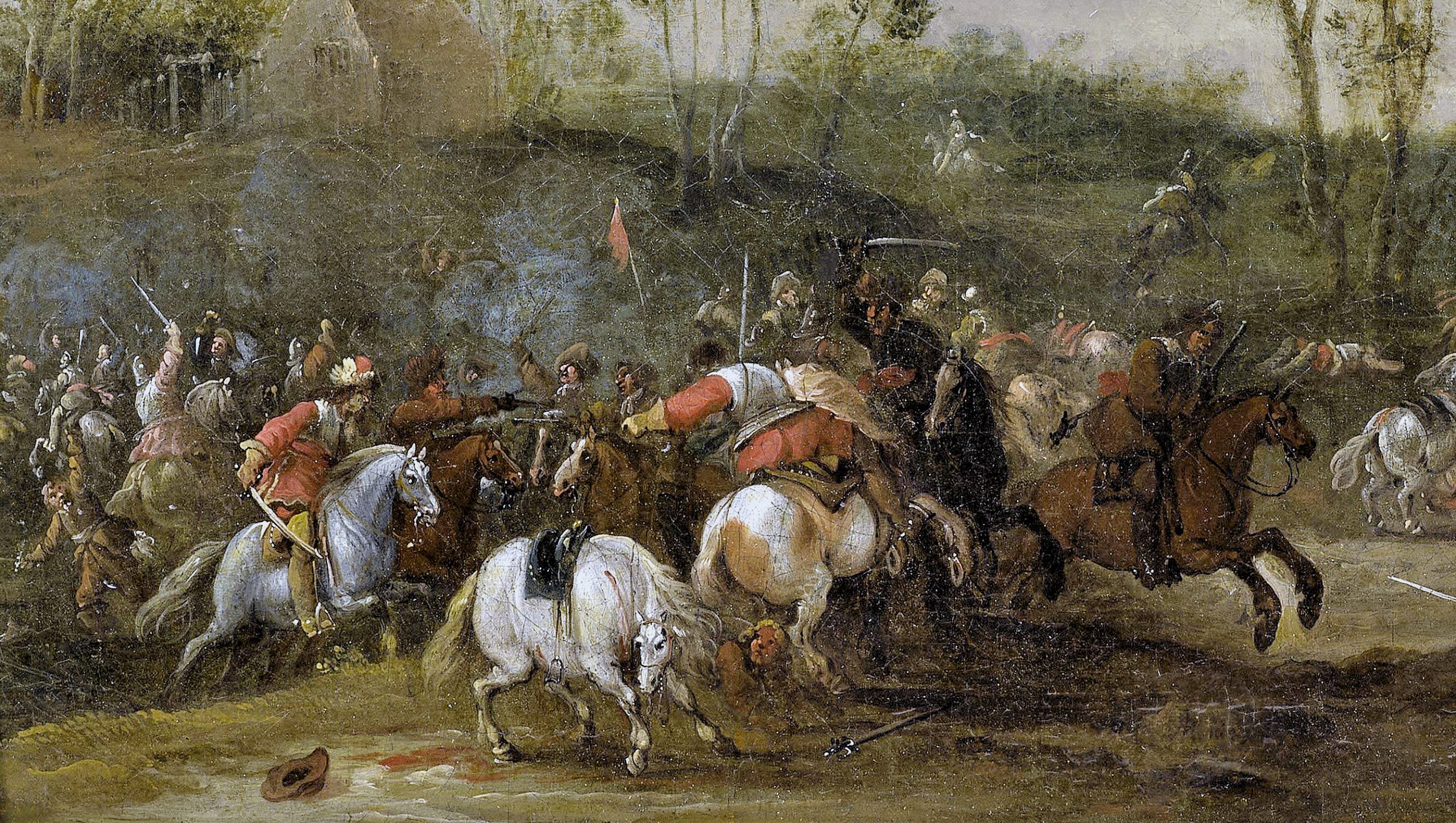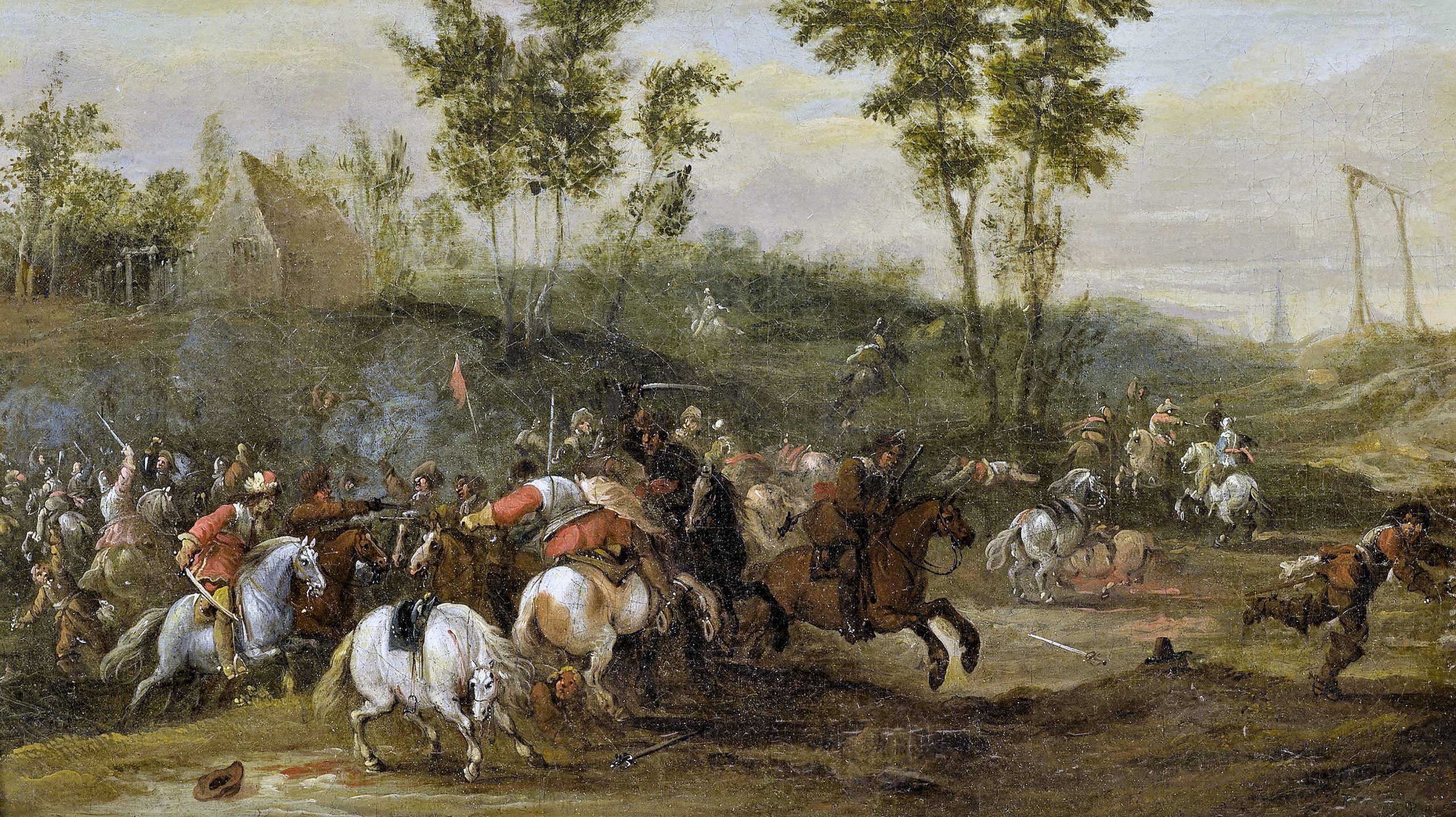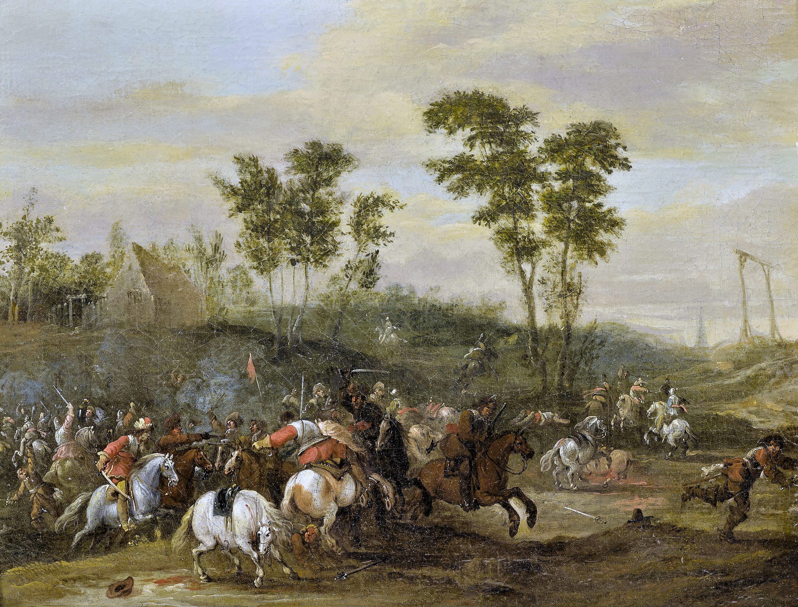 Pieter Meulener 1602-1654 Schlachtenszene monogrammiert und datiert
