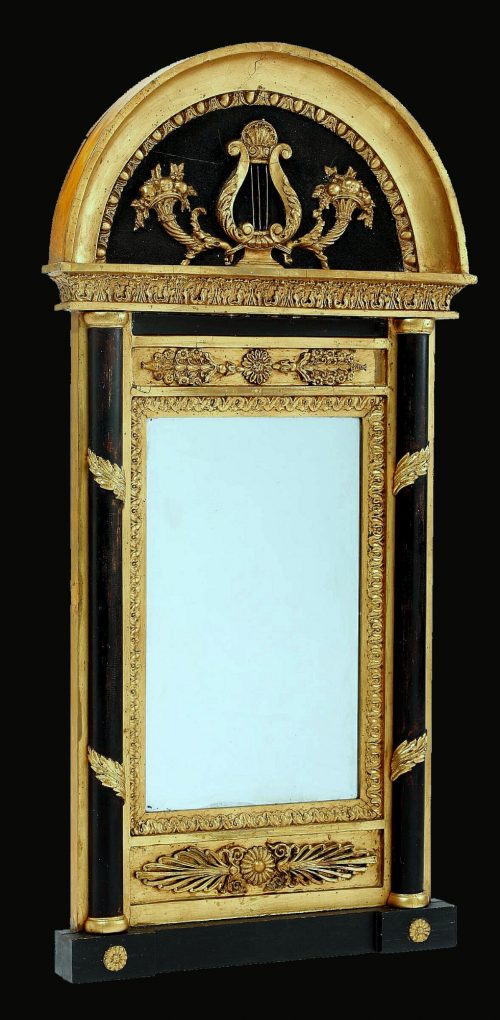 Spiegel Empire Schweden Stockholm Meisteretikett um 1810 H. 102 cm